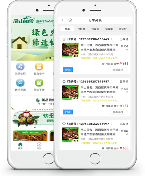 【南山田舍】微信小程序、【南山田舍】安卓APP是我司自营的农产品app,优选怀化本土特色农产品,通过自营电商平台,助力怀化乡村振兴